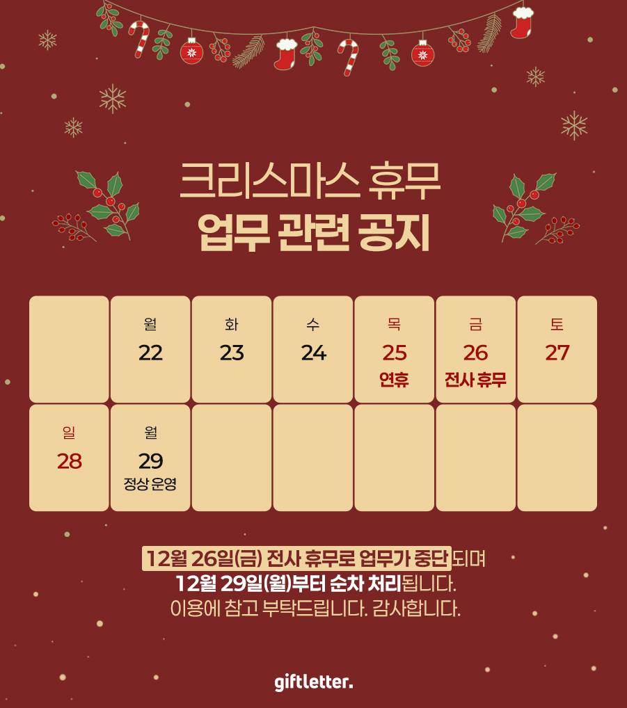 해당 기간 동안에는 모든 업무 및 고객 응대가 중단되며,